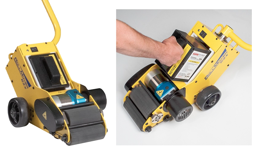 RollMover™ EZX's powerful profile offers an increased capacity to move rolls up to 11,000 lbs. across a flat floor or up to 5,500 lbs. into transition (varies by application). With a roll diameter range of 20" to 90", the RollMover™ EZX offers the ability to move a large range of rolls.