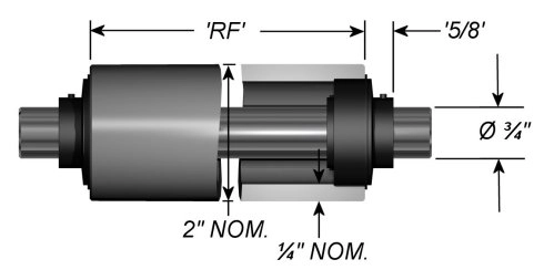 1026 DOM steel tubing O.D. skim cut and polished O.D. to bore concentricity: Taper over face width not to exceed 0.0005"/ft. length (0.002" min.) Dynamically balanced to your line speed within ISO grade G6.3. Additional fee if over 750 F.P.M. Special low drag ER style bearings for 3/4" diameter thru shaft | ![]() |