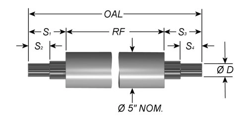 For single diameter shafts, S2 = 0 and S4 = 0 1/4" wall, 1026 DOM tubing O.D. skim cut and polished O.D. to bore concentricity: Taper over face width not to exceed 0.0005"/ft. length (0.002" min.) Dynamically balanced to your line speed within ISO grade G6.3. Additional fee if over 1000 F.P.M. Journal material: 1018 steel Journal sizes: up to 1-3/8" diameter x 6" long | ![]() |